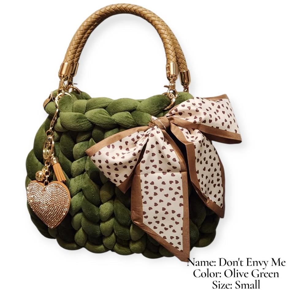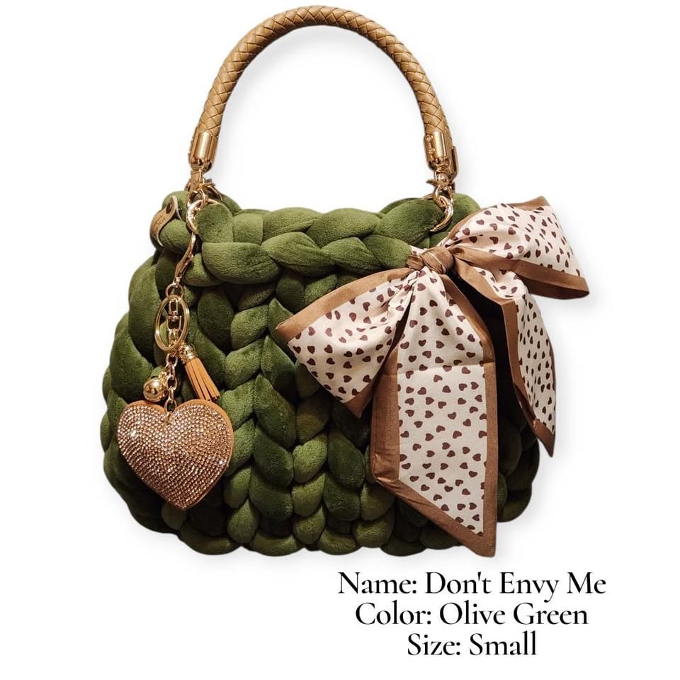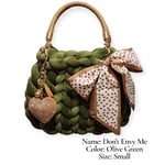 Make a statement without saying a word. The Don’t Envy Me handbag is a bold yet elegant piece designed for those who embrace their individuality. Handcrafted with a luxurious, chunky braided texture in a rich olive green, this bag delivers both style and substance in a compact size.