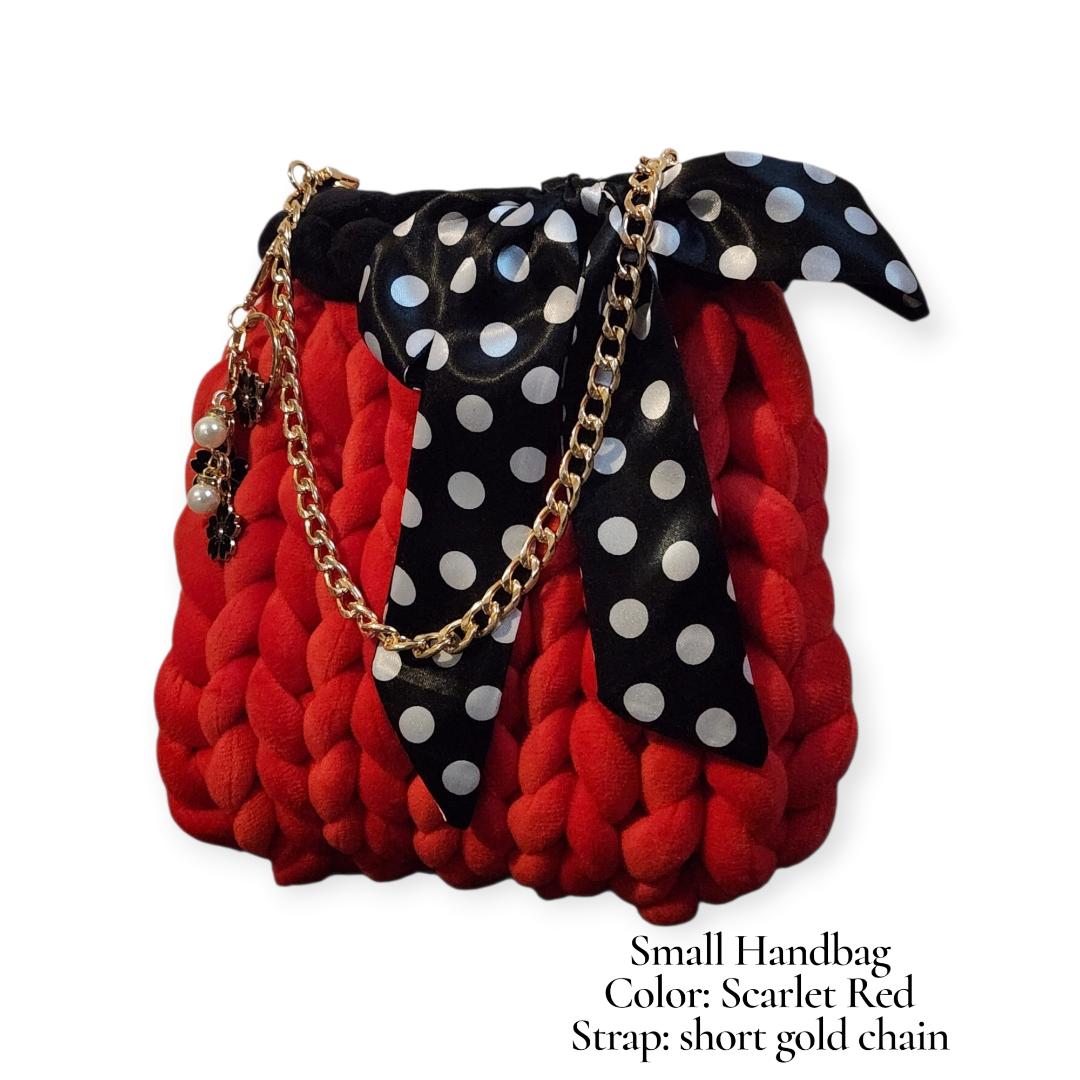 Add a playful pop of charm to your collection with The Polka Dot Darling Mini—a petite handbag that perfectly blends bold style with feminine elegance. Handcrafted with a rich, textured knit in a vibrant red hue, this small handbag is designed to make a statement while remaining effortlessly chic.