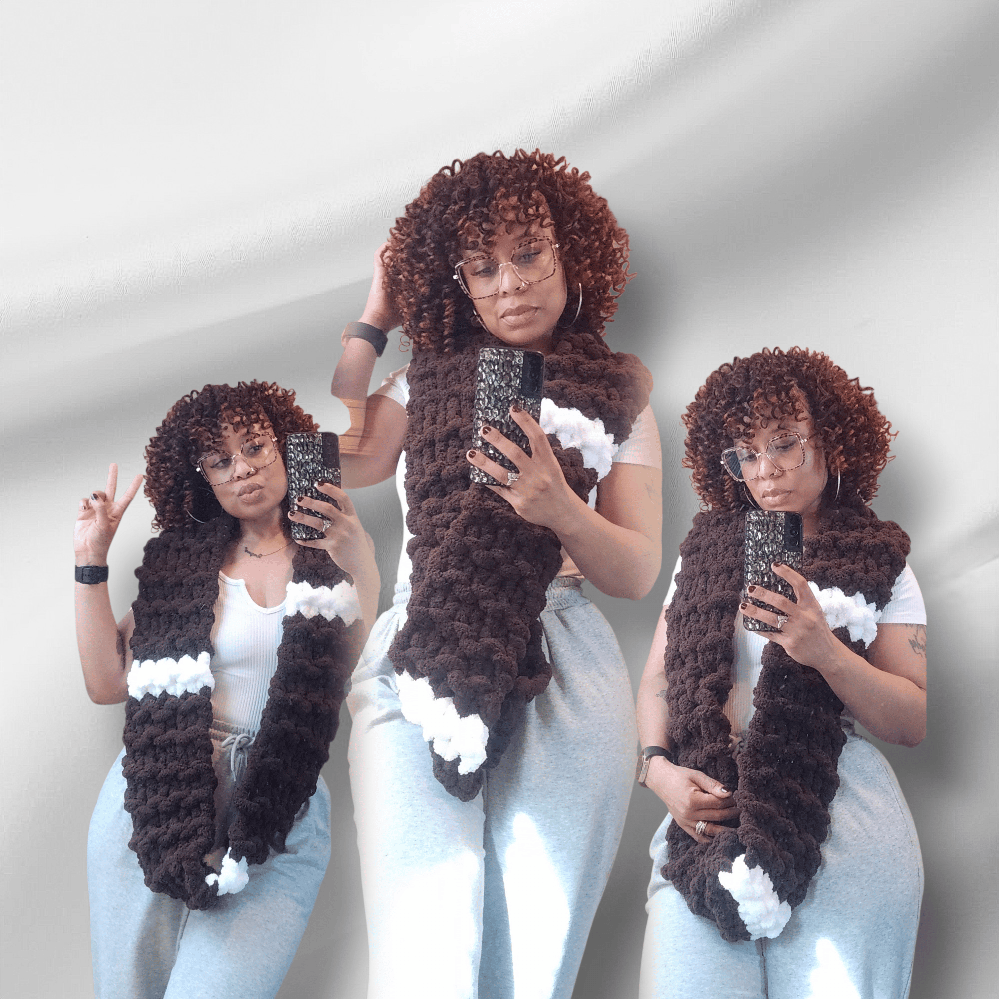 Add a pop of color and cozy style with our hand-knitted two-tone scarves. Designed with two beautifully paired colors and soft, textured stitches, this scarf brings warmth, personality, and handmade charm to any outfit. Each piece is carefully crafted to order using high-quality yarn, making every scarf unique and special.